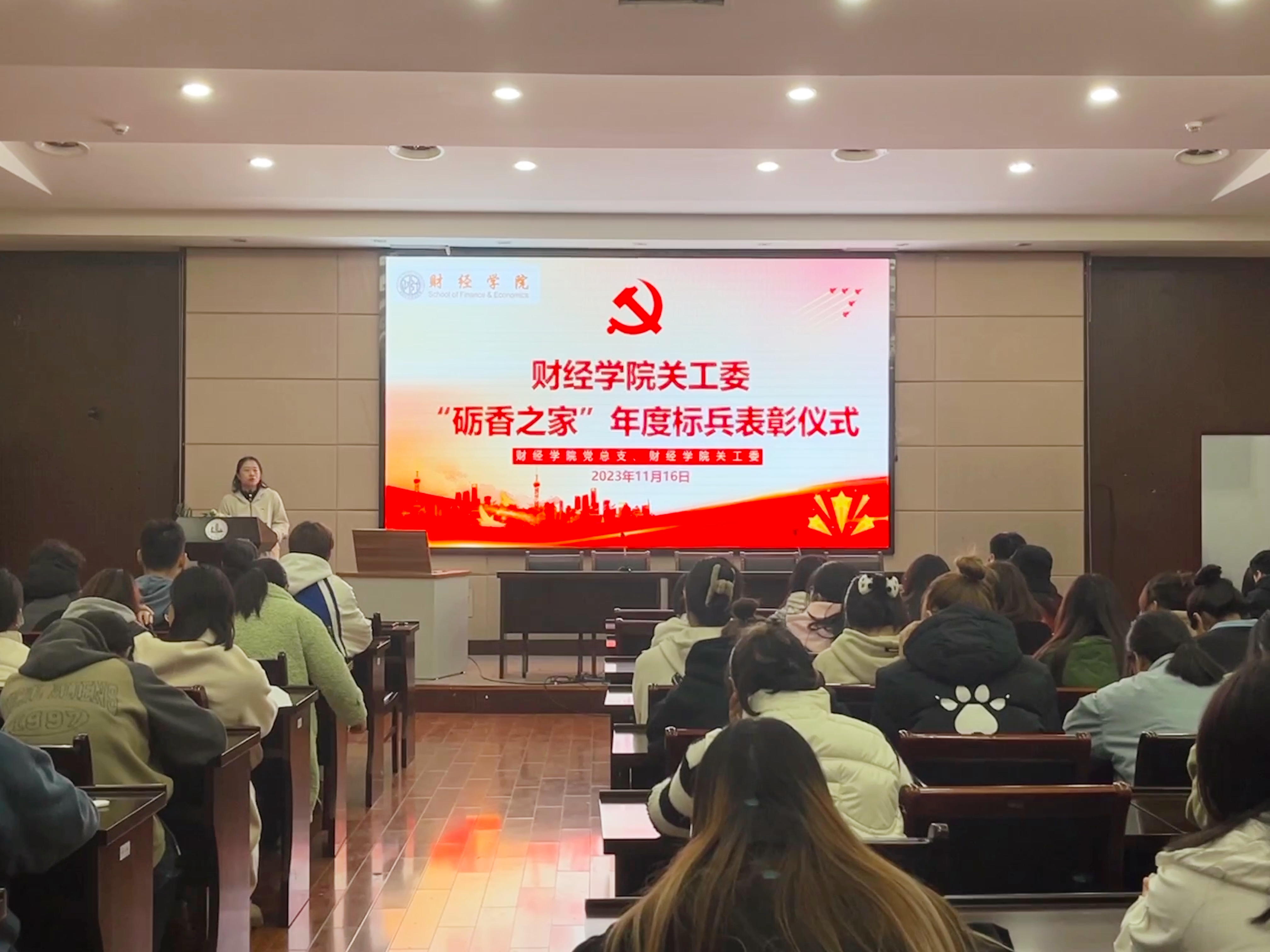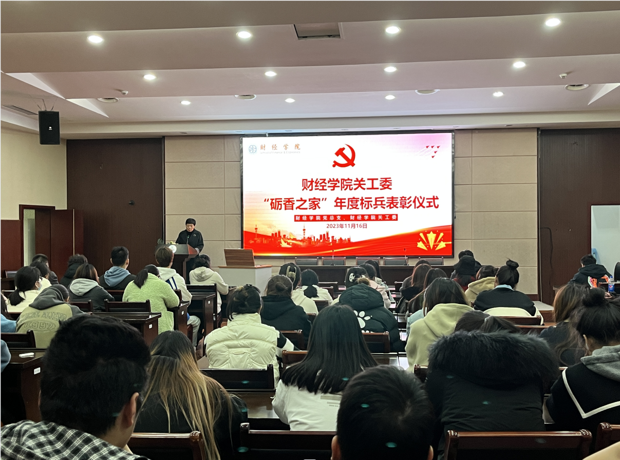 11月16日,财经学院党建品牌项目“经纬课堂”专题讲座暨关工委“砺香之家”年度标兵表彰仪式在国际交流中心二楼报告厅举行,财经学院相关负责人、关工委老师和70余名学生代表参加了本次讲座暨表彰仪式。