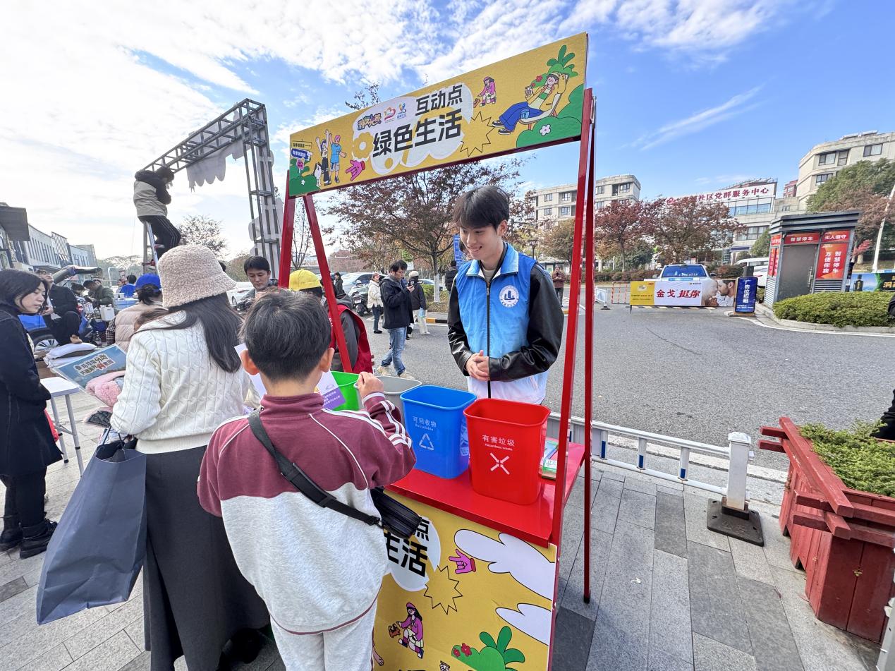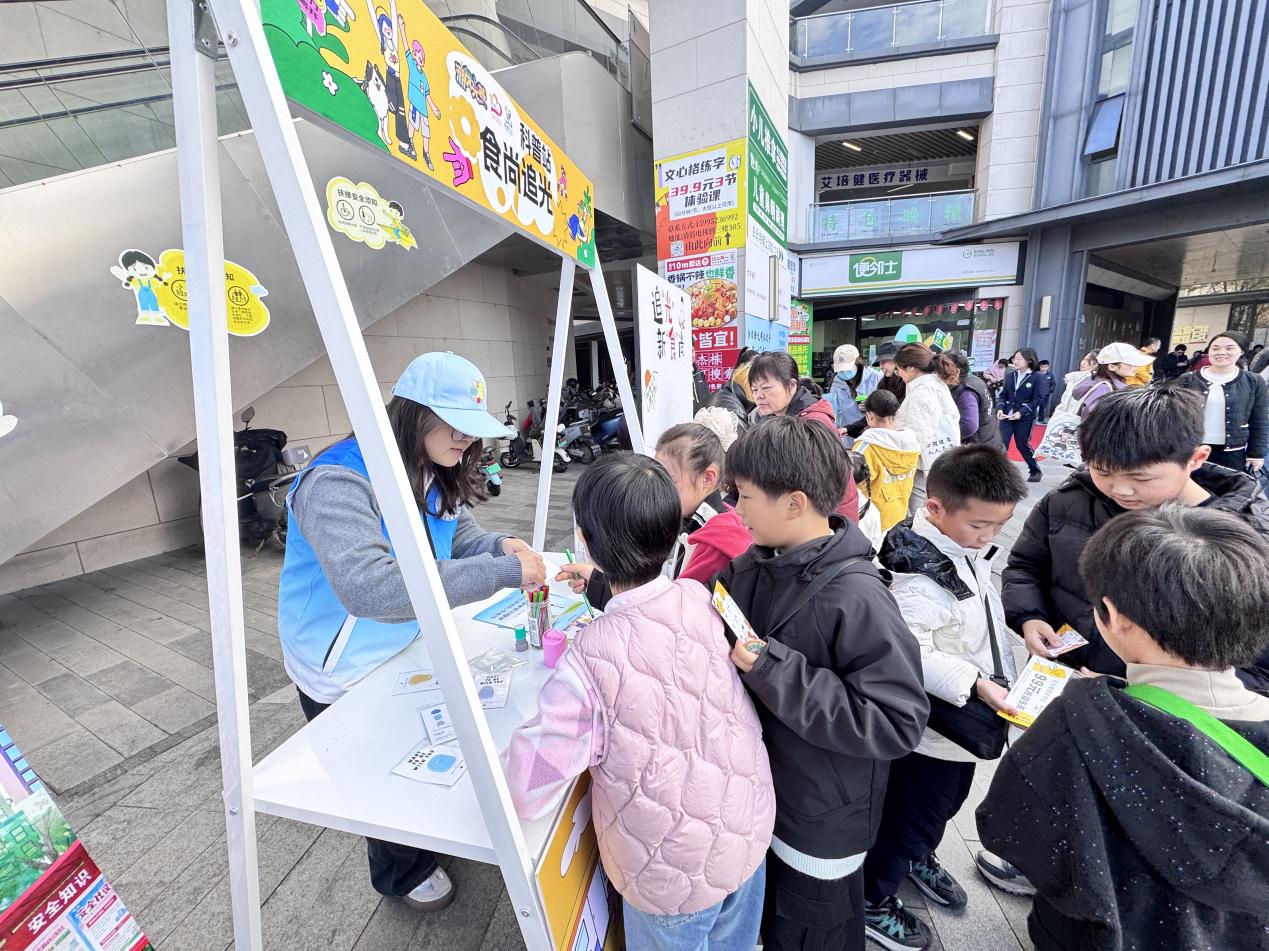 在社区商业广场上,志愿者们身着志愿者马甲穿梭忙碌,大家分工明确,迅速投入到社区安排的各项服务工作中。有的志愿者在文明养宠宣传站向过往居民发放文明养宠宣传单,讲解遛狗牵绳、粪便清理、夜间不吠等养犬规范,向居民们传递文明养宠的重要性;有的志愿者在“食”尚追“光”科普站积极倡导居民在日常生活中要自觉践行勤俭节约、文明用餐的理念,同时通过让社区小朋友手写节约粮食感悟,将“珍惜粮食、拒绝浪费”的理念传递给每一位社区居民;还有的志愿者在绿色生活互动点通过发放图文宣传单页和“垃圾分类模拟投放”趣味游戏,引导孩子们进行分类投放,面对投放错误的,志愿者也会进行纠正,告诉孩子们正确的投放位置。志愿者们相互协作,充分展现出新时代青年的责任担当与奉献精神。