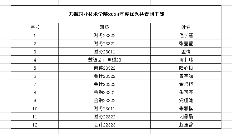根据《无锡职业技术学院关于做好2024年度团内各类评优工作的通知》文件精神,经过学院团总支评选,现将2024年度校“优秀共青团员”、“优秀共青团干部”和“五四”红旗团支部拟推报名单进行公示。