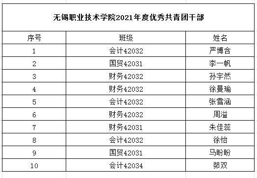 根据《无锡职业技术学院关于做好2021年度团内各类评优工作的通知》文件精神,经过学院分团委评选,现将2021年度校“优秀共青团员”、“优秀共青团干部”和“五四”红旗团支部拟推报名单进行公示。