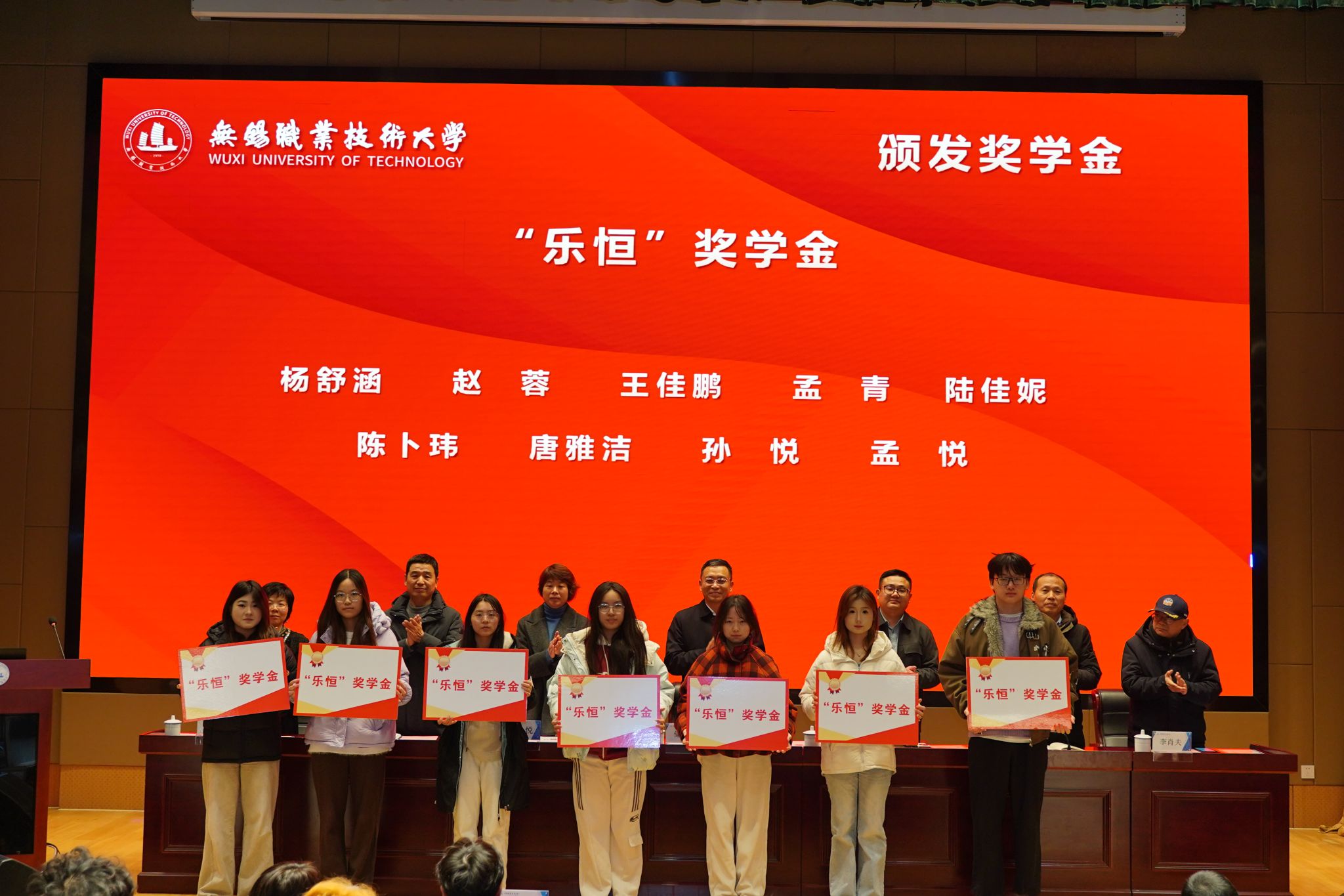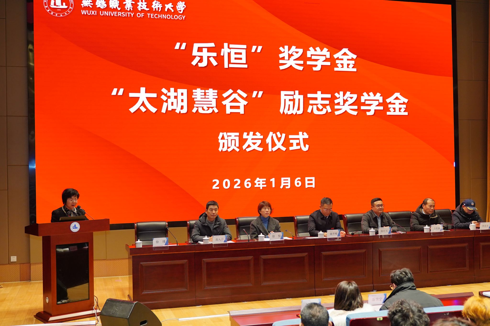 1月6日下午,无锡职业技术大学“乐恒”企业奖学金、“太湖慧谷”企业励志奖学金颁奖仪式在厚德楼一楼报告厅隆重举行。乐恒企业管理咨询有限公司总经理陈红军,学校副校长储开峰,学生处、财经学院相关负责人出席仪式,55名获奖学生齐聚现场,共同见证荣誉时刻。仪式由财经学院党总支书记徐瑾主持。