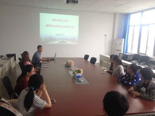 7月17日晚19:00,2015年财经学院暑期社会实践动员大会在J2-408会议室举行。会议主要就暑期社会实践的意义、具体流程、注意事项以及2015年暑期社会实践活动主题进行着重解析。二个重点团队成员、各班级团支书、艺术学院王思梦老师共20余人参加了会议,会议由辅导员孙台维老师主持。