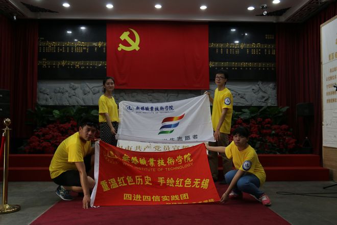 为响应校团委暑期社会实践“三下乡”活动的号召,以践行“八字真经”、投身“四个全面”为主题,结合今年纪念抗战胜利70周年活动,铭记历史,缅怀先烈,珍爱和平,创造未来,带着培育与践行社会主义核心价值观的强烈愿望,努力实现在实践中受教育,在教育中强素质。在今年暑假,无锡职业技术学院财经学院15名师生组成的“重温红色历史 手绘红色无锡”四进四信实践团在指导老师孙台维、王思梦的带领下,从7月底至八月末,开展了为期六周的大学生暑期社会实践活动,志愿者们获得了深刻的思想认识与实践体验。
