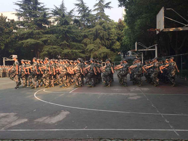 在为期半个月的军训时间里,同学们除了学习和掌握队列训练、会操等基本技能以外,还将培养顽强勇敢、坚忍不拔、吃苦耐劳、不怕困难的品德,弘扬团结友爱、互相帮助的集体主义精神,锻炼意志、增强体质。