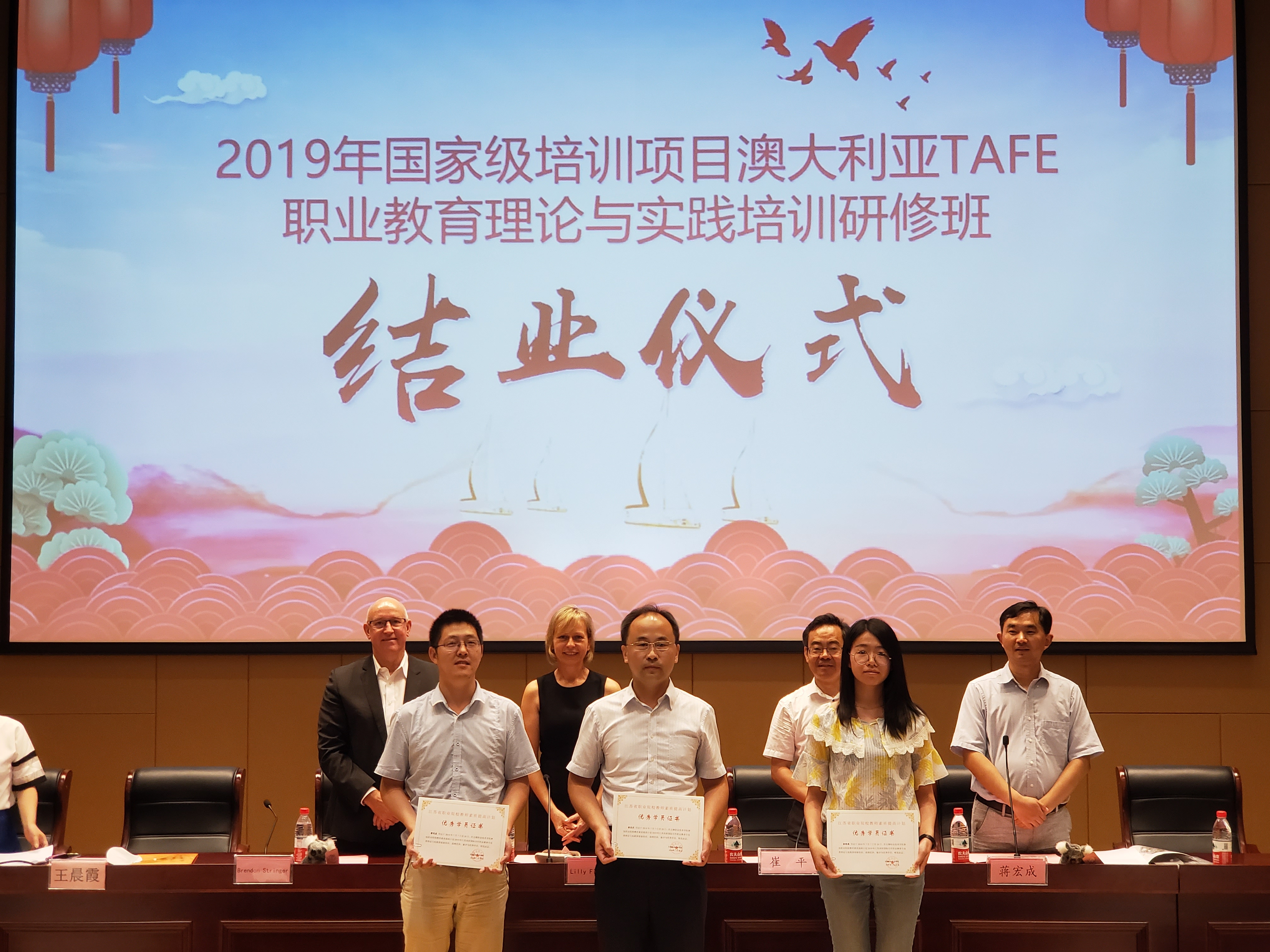 经过为期14天紧张充实的学习,2019年国家级培训项目澳大利亚TAFE职业教育理论与实践培训班圆满结业。7月20日,无锡职业技术学院继续教育学院崔平院长、澳大利亚IVET集团副总裁Lilly Finlayson女士、昆士兰州经理Brendon Stringer先生、财经学院蒋宏成副院长及全省82名国培学员在综合楼一楼大厅举行了结业典礼。财经学院副院长蒋宏成主持了结业典礼。