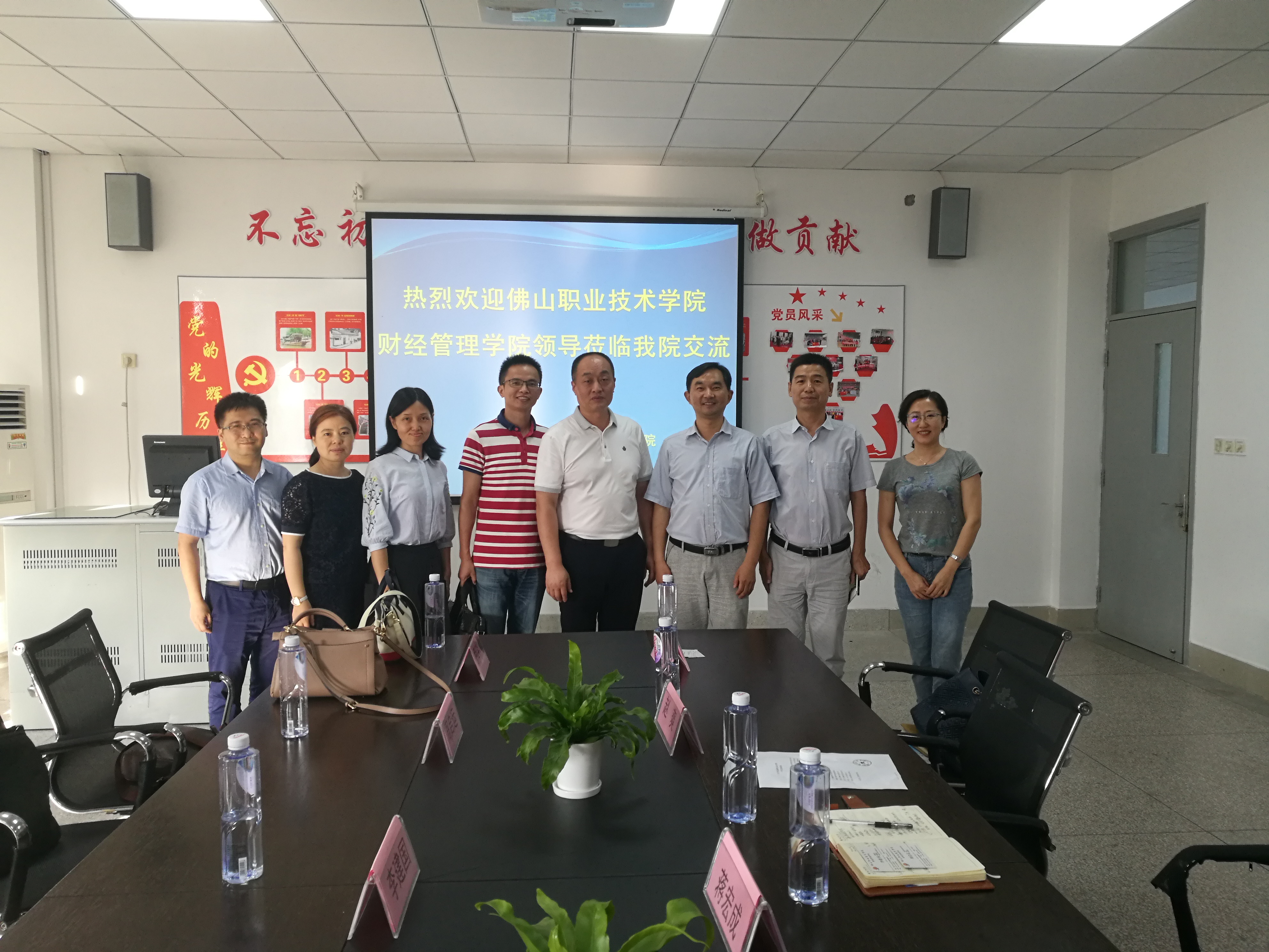 6月24日,佛山职业技术学院财经管理学院李建国副院长带队,金融与财会系周启运主任、林棠副主任以及专业带头人罗红华老师、余笑冰老师等一行5人来我校财经学院交流与调研。财经学院党总支吴明芳书记和赵爽副院长对佛山职业技术学院前来交流表示热烈欢迎,蒋宏成副院长组织财会系张春光主任、高凡修教授参与对接交流。
