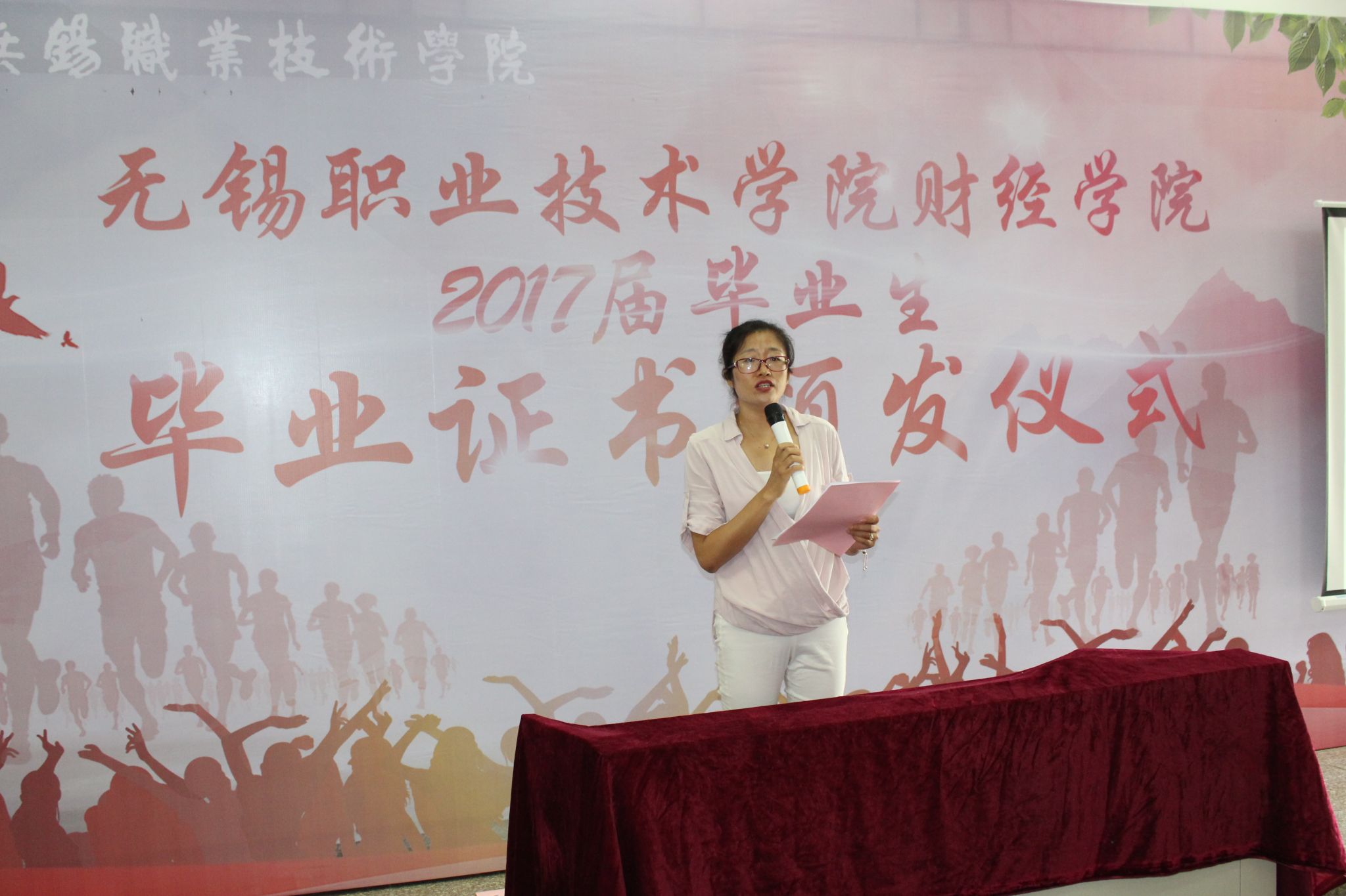几载求学路,一生锡职情,又是一年毕业季。6月16日上午十点,财经学院在J4-101隆重举行2017届毕业生毕业证书颁发仪式,235名同学顺利完成学业,取得毕业证书,踏上工作岗位,开始人生新的旅途。本次颁发仪式由财经学院学工办主任路晓丽老师主持,出席活动的有财经学院党总支书记吴明芳、副院长柏景岚、院长助理郑爱翔、办公室主任赵爽、辅导员汤淇老师等。