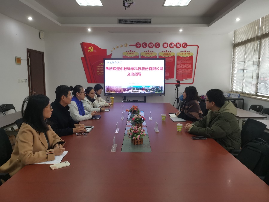 2025年12月5日,中教畅享科技股份有限公司事业部总监王亚娟、区域经理吕尉一行莅临财经学院,在明德楼A215会议室就“财经人机协同能力培养解决方案”进行了专题介绍与深入交流。财经学院院长赵爽、副院长高凡修、财务管理系主任陈云、会计系骨干教师钱奕含、国贸系骨干教师袁辰参加交流研讨。