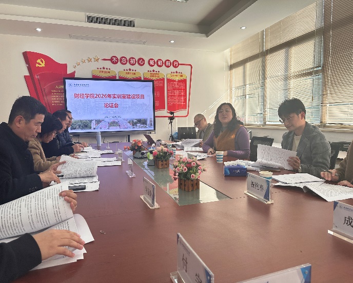 为进一步优化实训室建设方案,提升实践教学质量与人才培养水平,2025年12月29日下午,财经学院召开2026年实训室建设项目专家论证会。会议邀请了来自无锡商业职业技术学院、无锡城市职业技术学院和我校管理学院、财务处的校内外专家莅临指导,财经学院副院长高凡修主持会议,党总支书记徐瑾、副院长金其森及相关教师代表参会。